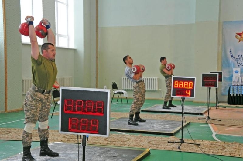 Первое место в чемпионате по гиревому двоеборью завоевали военнослужащие Регионального командования «Юг», II место — Военно-инженерный институт радиоэлектроники и связи, III место — Региональное командование «Восток». «Гиревое двоеборье проводилось по правилам дисциплины „Армейский гиревой спорт“ (участники чемпионата по гиревому двоеборью выступали в полевой форме одежды № 4). В этом году в рамках спартакиады впервые была проведена эстафета по гиревому двоеборью. Пяти участникам от каждой команды предстояло выполнить максимальное количество толчков двух гирь за три минуты. Данная эстафета проводилась в пробном формате вне чемпионата спартакиады вооруженных сил», — отметил заместитель главного судьи чемпионатов по гиревому двоеборью и армрестлингу, восьмикратный чемпион мира, заслуженный мастер спорта РК по гиревому спорту Виталий Диденко.