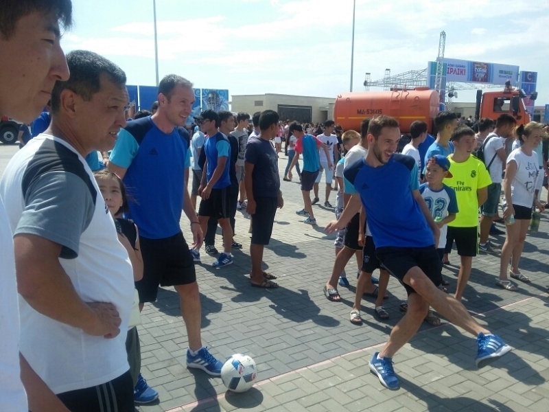 В рамках молодежной акции в парке «Жастар» игроки команды «Жетысу» провели мастер-класс для местных мальчишек, а также автограф и фотосессию.