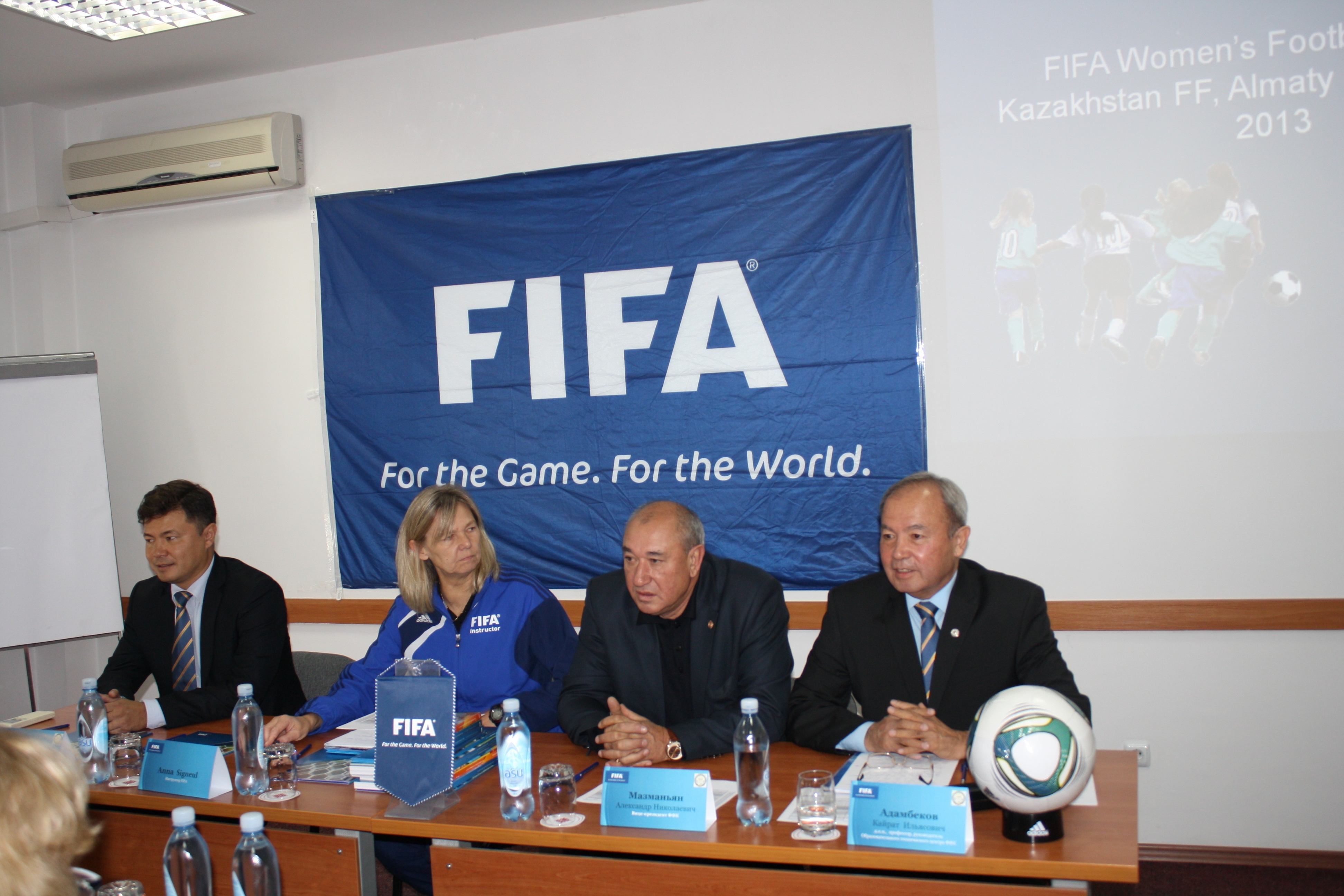 С 14 по 18 октября 2013 года Международная футбольная ассоциация FIFA и Федерация Футбола Казахстана организовала образовательные курсы для тренеров нашей республики по женскому футболу. Курсы проводят инструктор ФИФА, главный тренер сборной женской команды Шотландии, одна из ведущих топ-тренеров Европы г-жа Анна Сигнуэль и профессорско-преподавательский состав технического центра ФФК.