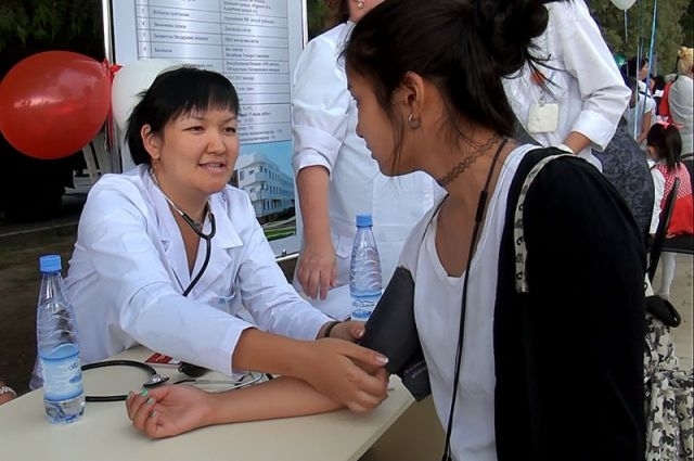 Прямо на площади все желающие могли бесплатно проконсультироваться у врачей. Горожане измеряли давление, сдавали кровь на экспересс-анализ. А шымкентские воркаутеры тем временем установили для гостей турник и брусья. Любой желающий мог бросить вызов команде XIII Legion.