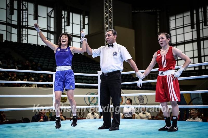 19-летняя японка Намики Цукими (51) оставила двукратную чемпионку мира Назым Кызайбай с бронзой — раздельным решением 3:2 победа присуждена Намики, чьё самое большое достижение на сегодня — золото на Балканском молодёжном турнире в Болгарии.