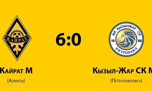 Молодёжный состав «Кайрата» в родных стенах разгромил гостей из Петропавловска — 6:0. В составе «желто-черных» голы забили Марлен Айманов, Вячеслав Швырёв, Али Тажетдинов и дублем отметился Улан Утешев. В добавленное время шестой мяч в ворота соперника отправил Нурдаулет Агзамбаев.