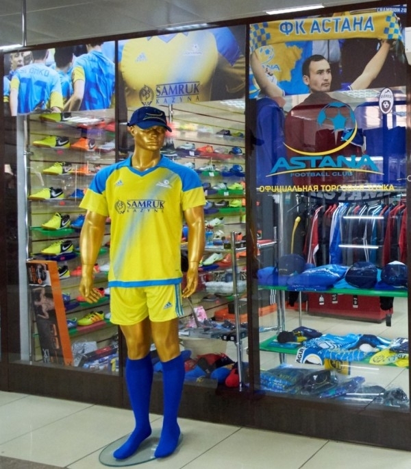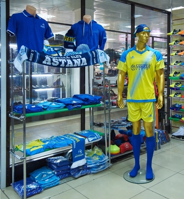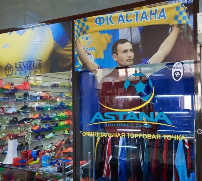«Любители футбола Астаны и гости столицы! Открыта вторая торговая точка лучшего футбольного клуба страны — чемпиона Казахстана, ФК „Астана“! В ассортименте — игровая форма с возможностью нанесения номеров и фамилий, бейсболки, шарфы на любой вкус, поло, свитшоты, толстовки, шапочки и многое другое. Приходи в наш фан-шоп и будь на цветах! Алга, „Астана“!