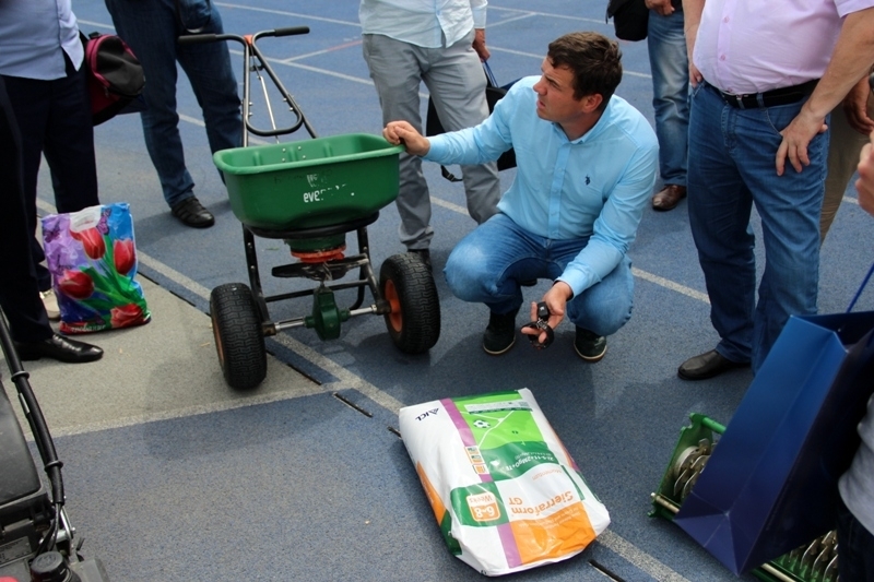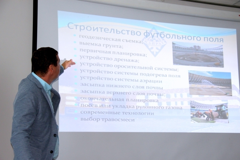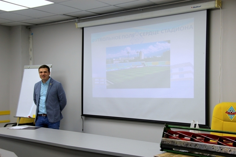Лектором на данном семинаре выступил главный агроном футбольного клуба «Кайрат» Виктор Яроменко, который имеет опыт работы в подготовке футбольных газонов к матчам финальной части Чемпионата Европы — 2012 на стадионе «Олимпийский», групповых этапов Лиги Чемпионов и Лиги Европы УЕФА.