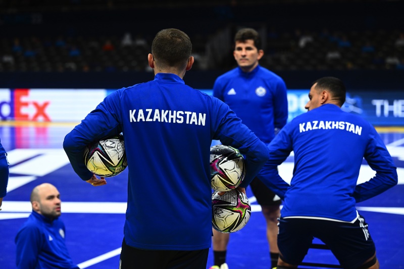 Представлен фоторепортаж с предыгровой тренировки сборной Казахстана по футзалу