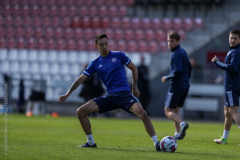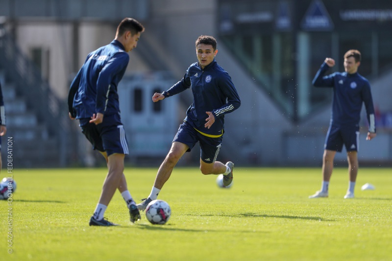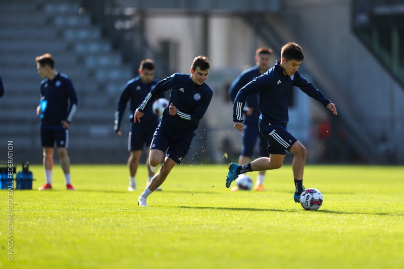 Представлен фоторепортаж с тренировки молодежной сборной Казахстана перед матчем с Данией