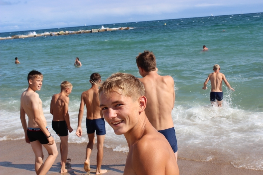 И порт, и пляж, несмотря на ветренный день, были полны отдыхающих, а Средиземное море бурлило и окатывало купающихся огромными волнами. Дети, увидав море, тут же бросились к нему бежать, тренерам с трудом удалось приостановить их и убедить далеко не заплывать и быть осторожными. Эмоции и радость детей от купания не передать словами.