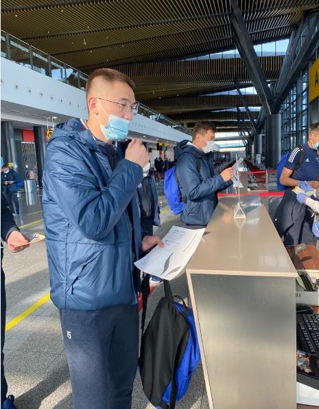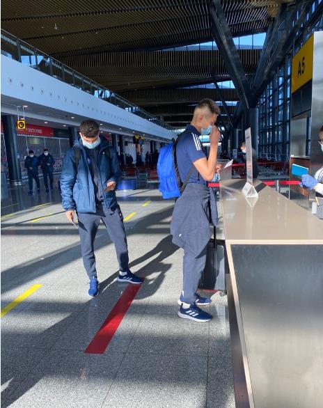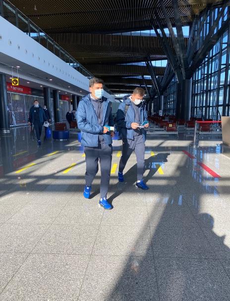Национальная федерация футбола опубликовала фотографии казахстанской сборной из аэропорта, вылетающей в Киев на матч отборочного цикла против украинской сборной.