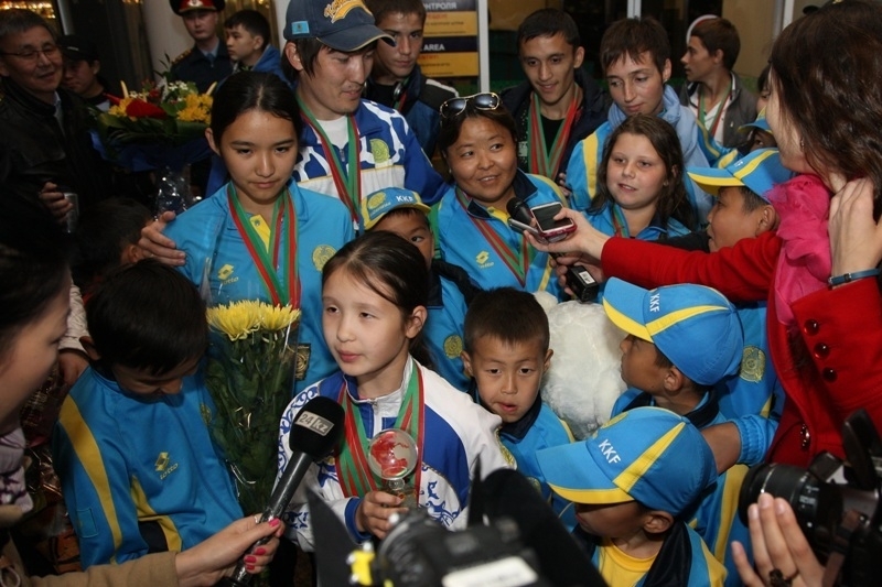 Казахстанская сборная по каратэ-до в стиле шотокан прилетела в Астану, успешно выступив на Чемпионате мира (FSKA). Он прошел 26-28 сентября в португальском городе Алмада. В столичном аэропорту спортсменов встретили их фанаты.