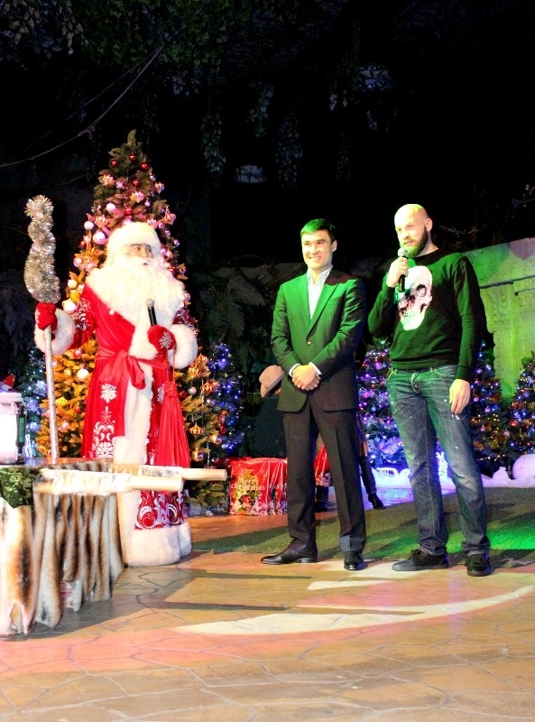 Василий Левит наказал ребятам слушаться старших, хорошо учиться и заниматься спортом. Дети соревновались в разных конкурсах и викторинах, самые активные получили специальные призы. А напоследок с восторгом сфотографировались с боксёрами, Дедом Морозом и Снегурочкой.