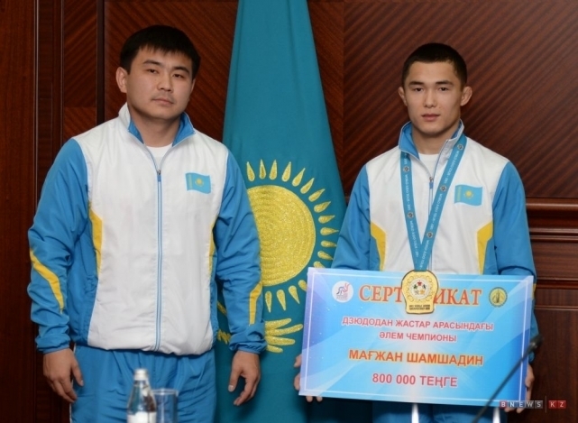 Сертификат на 800 тысяч тенге вручили дзюдоисту Магжану Шамшадину