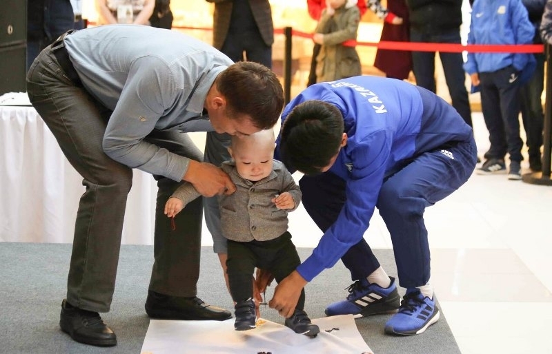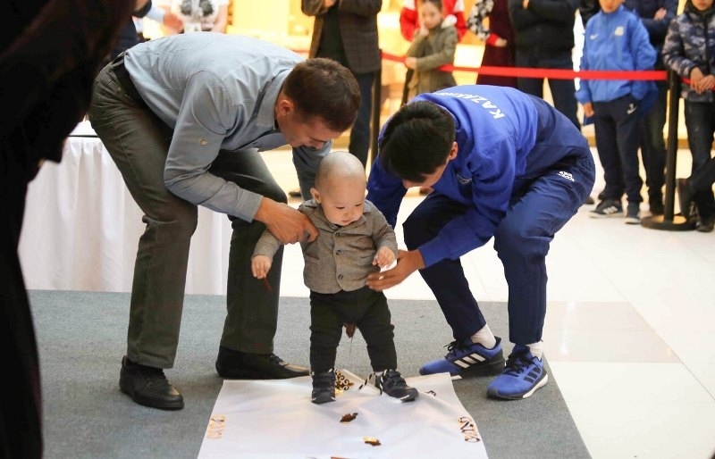 Оригинальности встрече придал казахский национальный обряд, которую провела семья, ждавшая приезда главной команды страны целый месяц. В самом разгаре мероприятия состоялось знаменательное событие в жизни малыша по имени Ибрахим. Ему исполнился 1 год и родители изъявили желание, чтобы обряд «Тұсау кесу» («Разрезание пут») провел нападающий нашей команды и российской «Уфы» Еркебулан Сейдахмет. Это весьма символично, возможно, в будущем этот ребенок выберет путь Еркебулана и станет таким же талантливым футболистом.