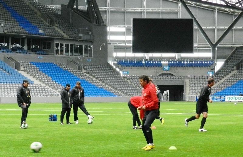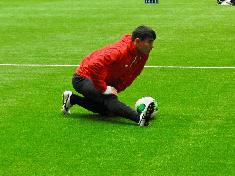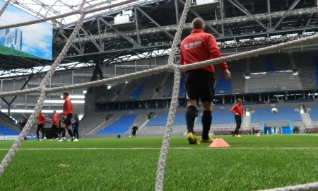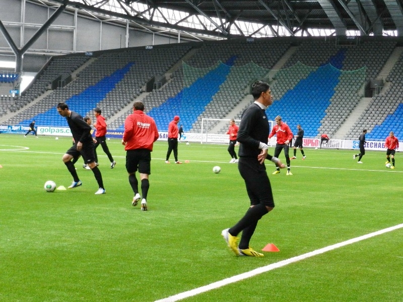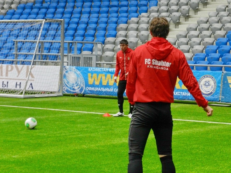Карагандинский «Шахтер» предпочел утреннюю тренировку вечерней и с 11.00 новенький газон «Астана — Арены» принял действующих чемпионов страны.