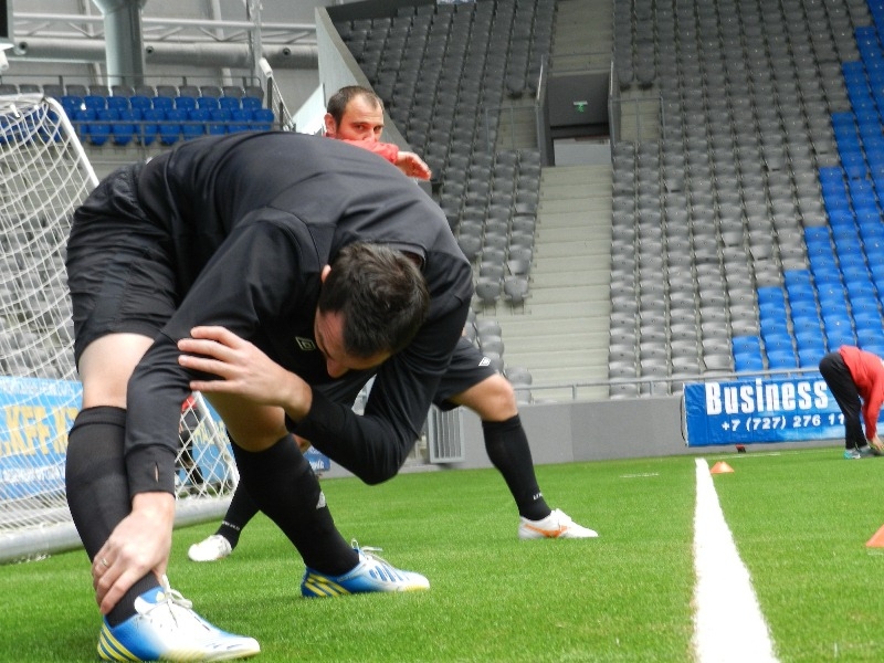 Для СМИ были открыты лишь первые 15 минут тренировки и подсмотреть какие-то «домашние заготовки» карагандинцев не удалось. Главное приобретение «Шахтера» в межсезонье — форвард Национальной сборной Дауренбек Тажимбетов занимался в охотку. Жамбыл Кукеев раз за разом демонстрировал высокую технику. Видно было старание Максата Байжанова и Андрея Финонченко. Рвется на поле, восстановившийся после травмы, Сергей Хижниченко. Очень собранными выглядели Василевич и Вичюс. «Шахтер» готовится дать настоящий бой столичному клубу.