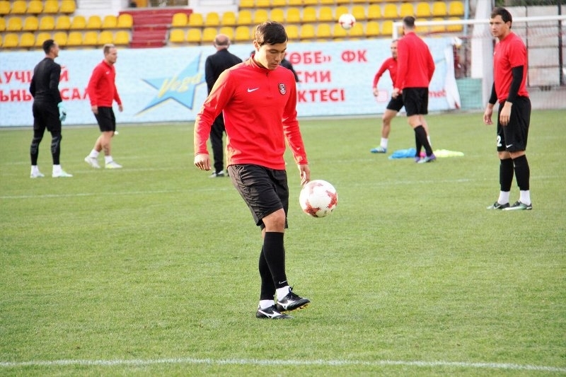 Сегодня карагандинская дружина благополучно добралась до города на белом холме и накануне матча против местного «Актобе» вечером провела завершающую тренировку на поле Центрального стадиона им. Кобланды Батыра.