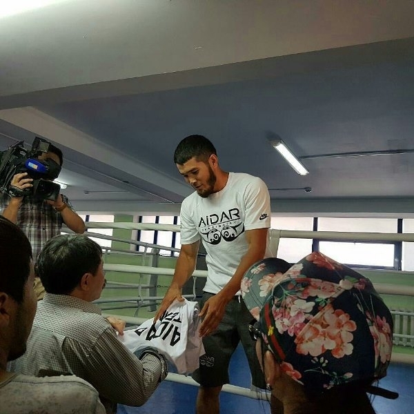 Непобежденный казахстанский боксер-профессионал Айдар Шарибаев в своем тренировочном зале «Aidar Classis», который расположен в Алматы, провел встречу с представителями СМИ и болельщиками, сообщается в группе «Профи Бокс Казахстана» ВКонтакте.