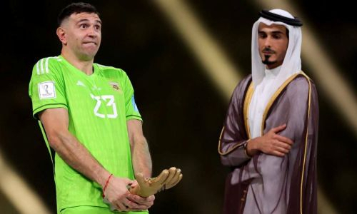 Напомним, Эмильяно Мартинес стал одним из главных творцов победы Аргентины на чемпионате мира в Катаре: он помог своей команде выиграть две серии послематчевых пенальти, включая финал против Франции (3:3, пен. — 4:2). Впрочем, запомнился аргентинский голкипер не только своими спортивными успехами, но и несколькими странными поступками: сначала он объявил «минуту молчания» по Килиану Мбаппе, а затем на вручении приза лучшему вратарю ЧМ-2022 приставил награду к паху.