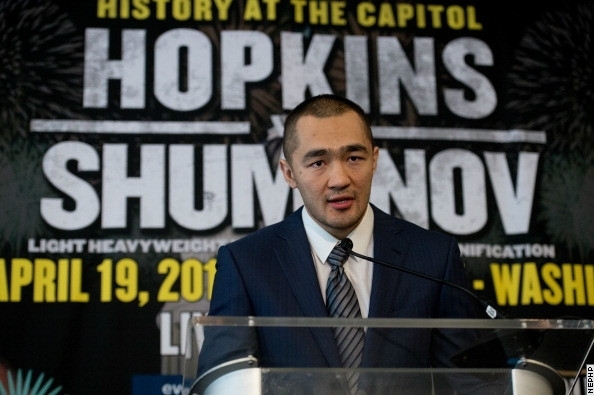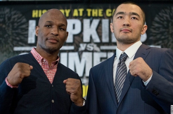 Вчера в США состоялась пресс-конференция перед намеченным на 19 апреля в Вашингтоне поединком между чемпионом Мира по версии IBF в полутяжелом весе 49-летним американцем Бернардом Хопкинсом и обладателем титула WBA (Super) в этом весе 30-летним казахстанцем Бейбутом Шуменовым.
