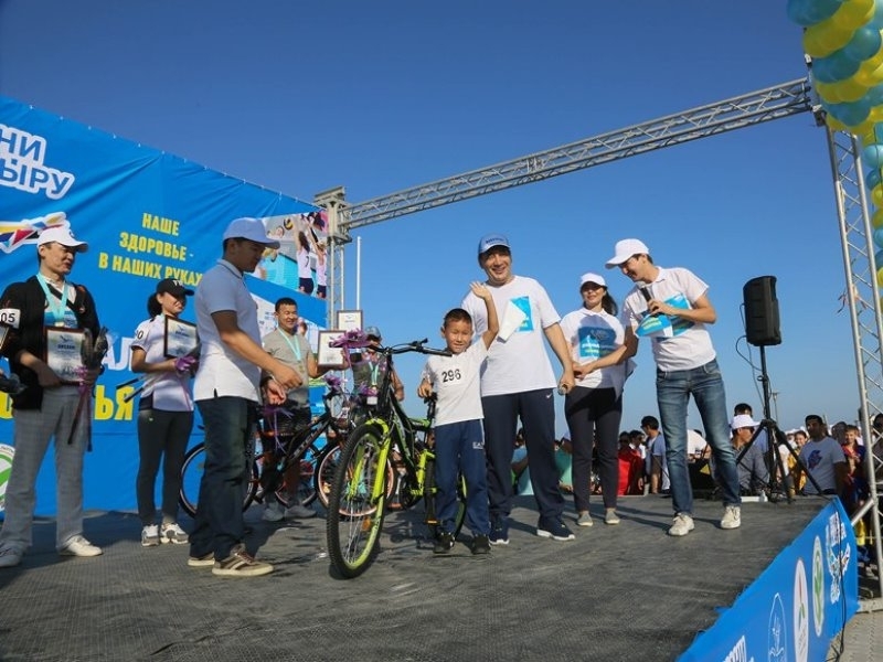 Тугжанов вручил ценные призы призерам марафона «Жаяу жүру — зиян емес, жүрмеу — зиян». Отметили и самого юного участника Измуханбет Турара, участвовавшего в пешем марафоне. Он стал обладателем велосипеда.