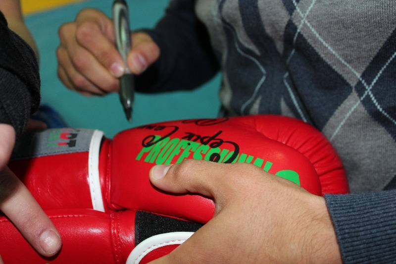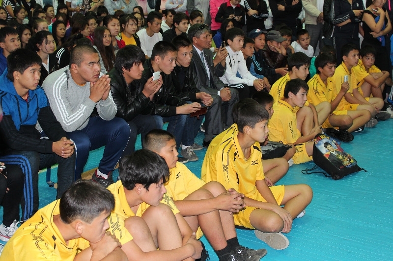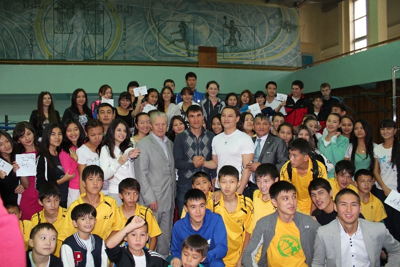 Встречу было решено провести в неформальной обстановке прямо в спортивном зале. Визит легендарного боксера вызвал огромный ажиотаж. Молодые люди буквально обступили своего кумира, расположившись на борцовских коврах и матах вокруг него.