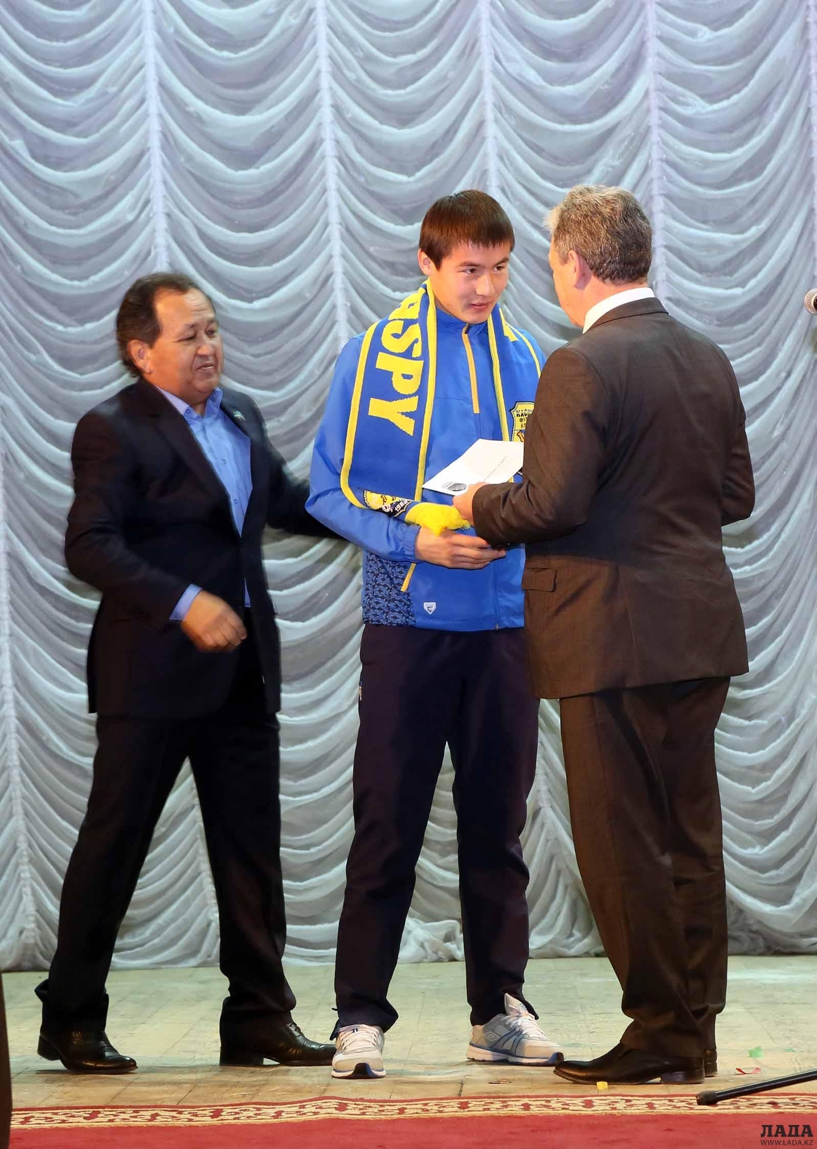 В областной филармонии Актау 7 декабря состоялась торжественная церемония закрытия футбольного сезона-2014. В ней участвовали ветераны футбола, спортсмены, тренеры, руководство облспорта, футбольного клуба «Каспий», федерации футбола, родители юных футболистов.