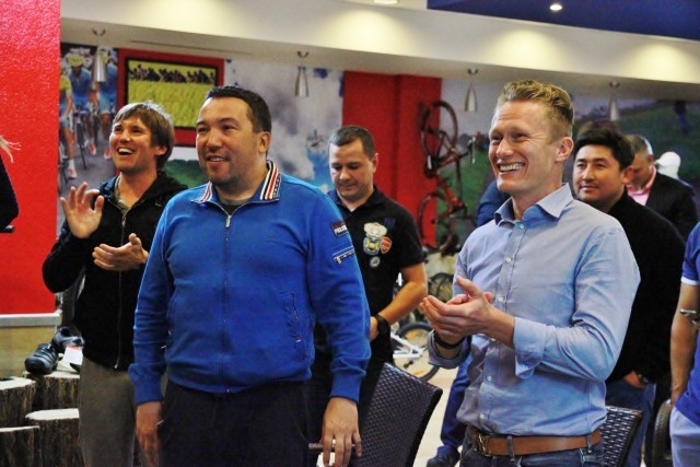 В разгар гонки компанию любителям велоспорта составили Александр Винокуров, Нурлан Смагулов, Дмитрий Муравьев и Сергей Яковлев.