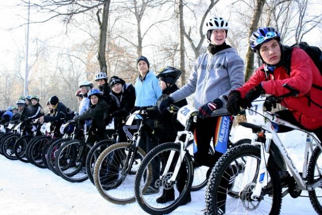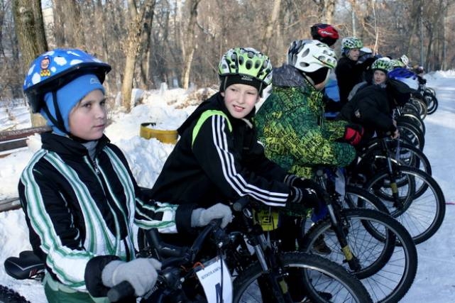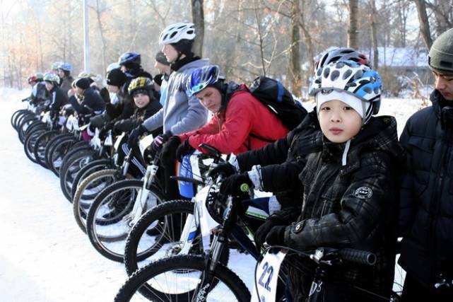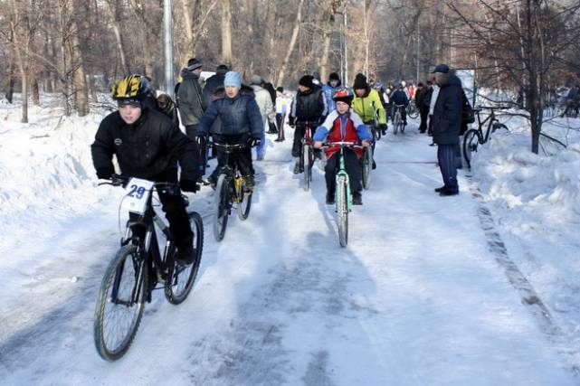 В первый день зимнего сезона прошел открытый чемпионат, заезд на дистанцию 1200 метров, в состязании приняли участие 70 любителей зимнего велоспорта.