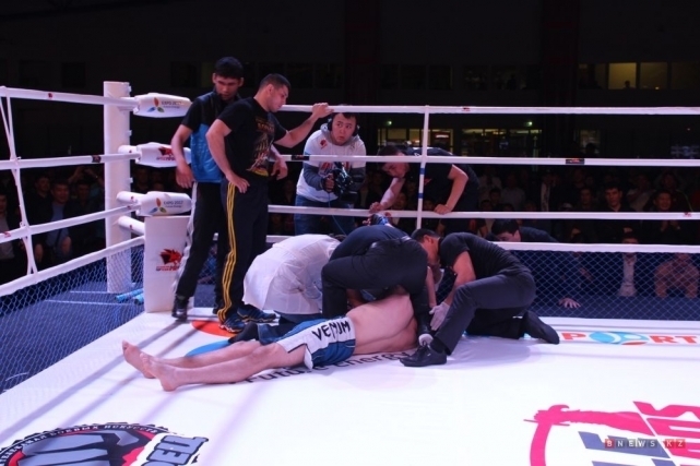 В главном поединке вечера сошлись Дамир Исмагулов из ЗКО и Фуад Алиев из Азербайджана. Бойца из Баку к соревнованиям готовил чемпион мира по ММА 2013 года Эхтигад Атакишев. Для того, чтобы выявить победителя, спортсменам пришлось провести три раунда. Победу одержал Дамир Исмагулов.