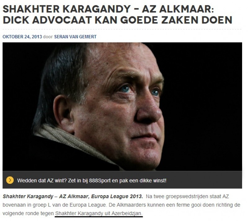 Голландские СМИ считают, что казахстанский «Шахтер» из Караганды представляет Азербайджан.