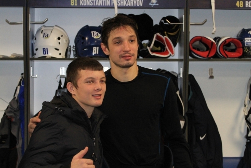 Всю игру они поддерживали любимую команду, а после матча даже получили возможность пообщаться с хоккеистами лично — в раздевалке. Фото, автографы и личные советы от мастеров хоккея — все что было нужно детям для счастья в этот вечер.