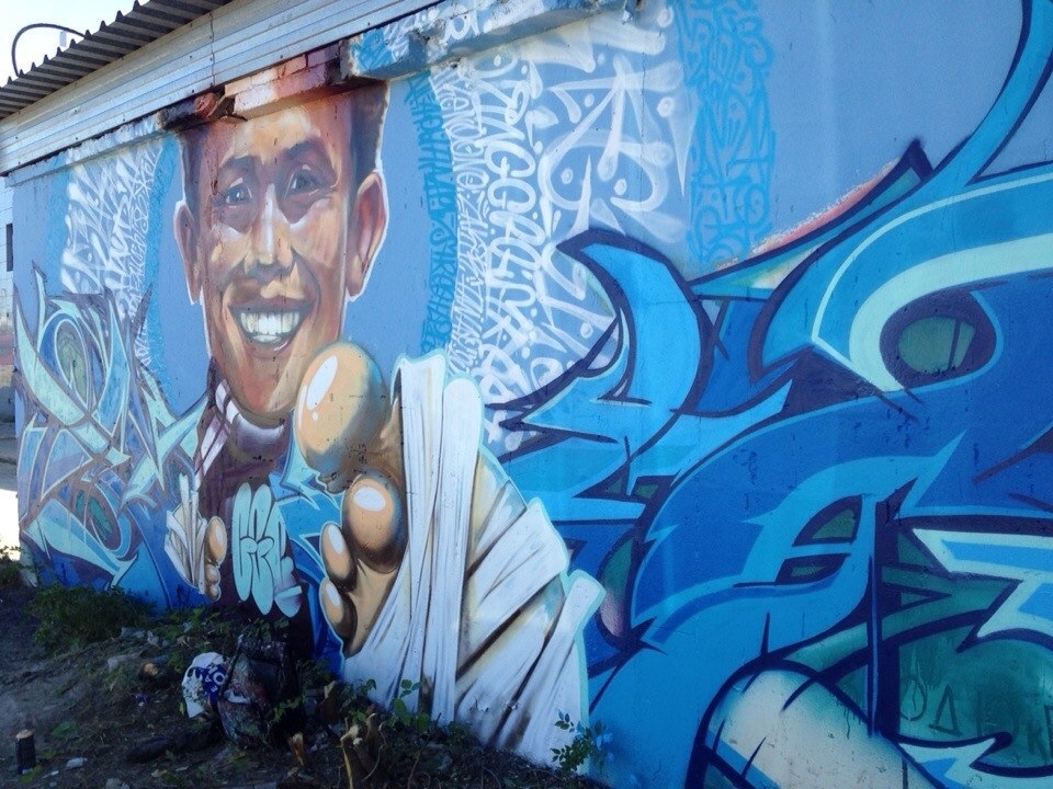 В Караганде появилось граффити с изображением Геннадия Головкина, сообщает официальная группа боксера ВКонтакте.
