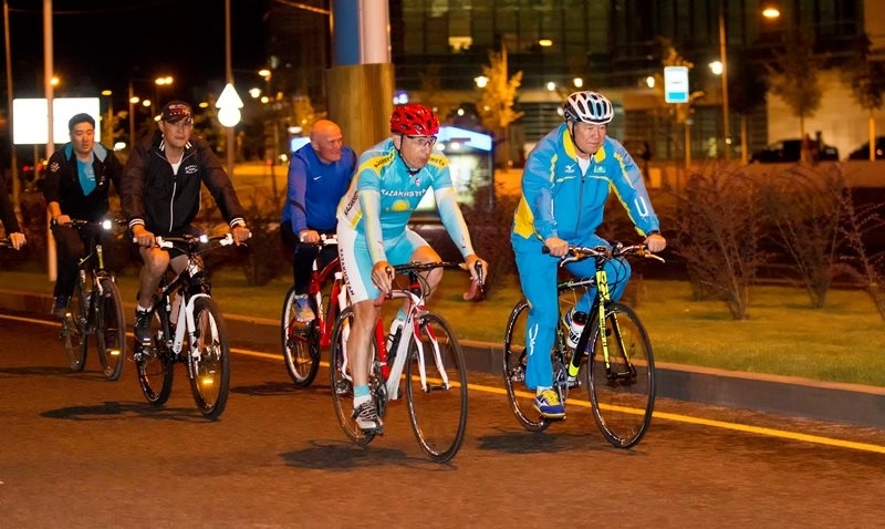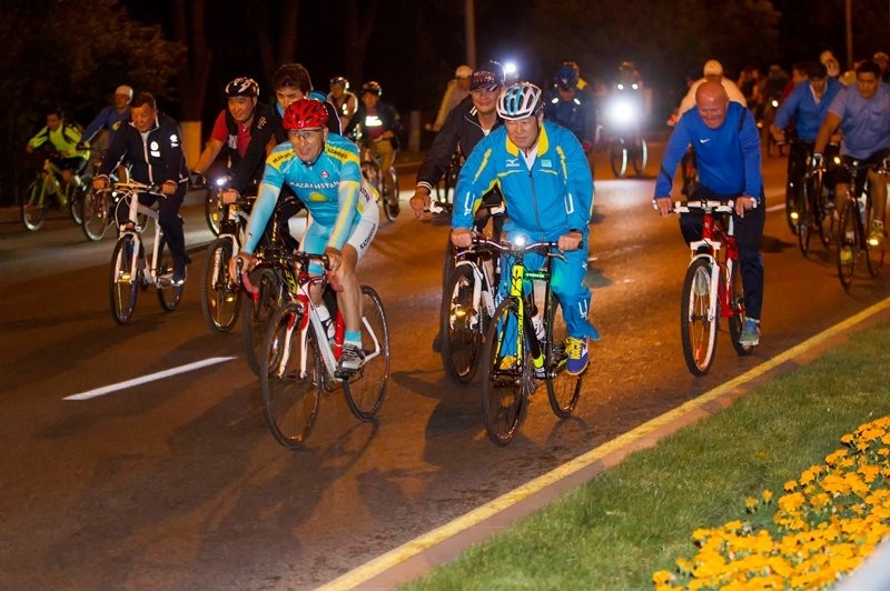 В Казахстане состоялся первый ночной велопробег