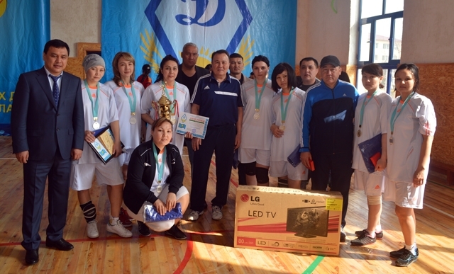 На второй строчке волейбольного турнира разместились сотрудницы ГУВД Шымкента.
