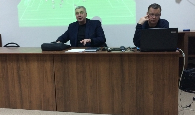 Технические директоры ФФК Владимир Белявский и Юрий Свирков ознакомили слушателей с новыми подходами в тактической и технической подготовке футболистов.