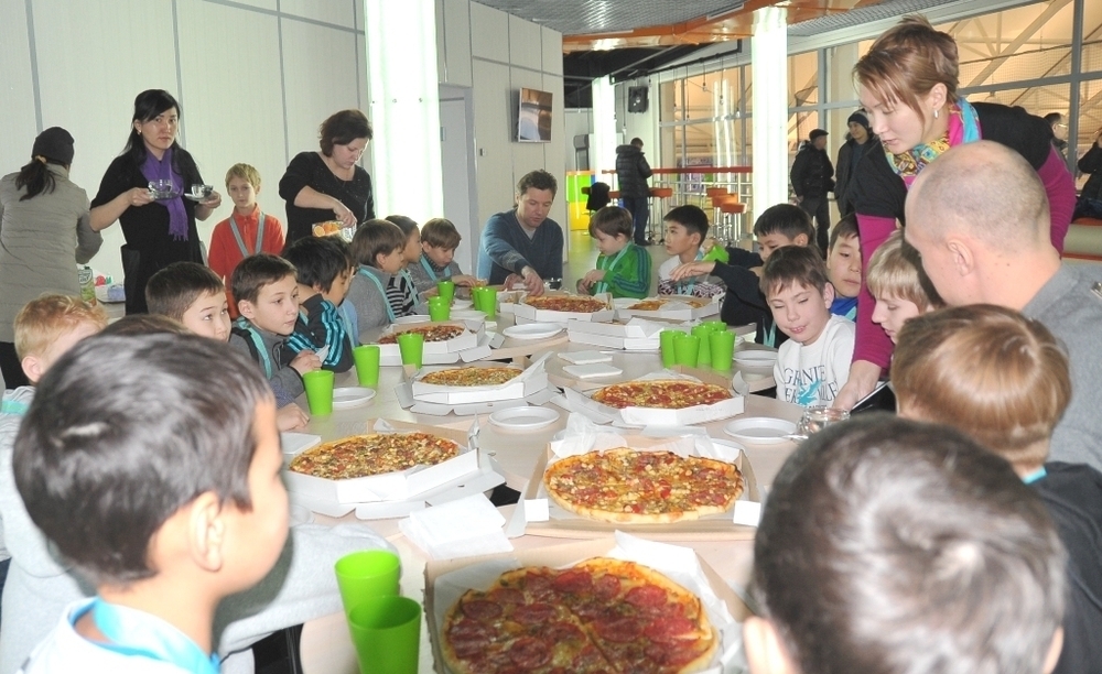 После торжественной части, в которой игроки «Барыса» лично наградили подрастающее поколение хоккеистов медалями, настал черёд десерта, специально подготовленного родителями юных спортсменов к 15-летию клуба.