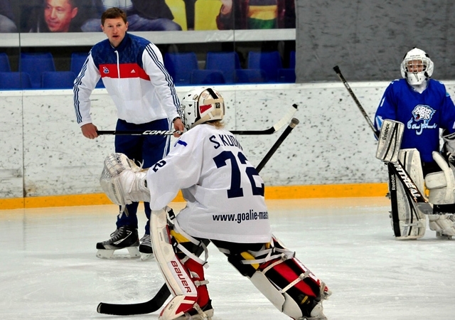 Голкипер сборной Казахстана и ярославского «Локомотива» Виталий Колесник провёл мастер-класс для детей в рамках сборов школы вратарей Алексея Плотникова на базе в Мичурино.