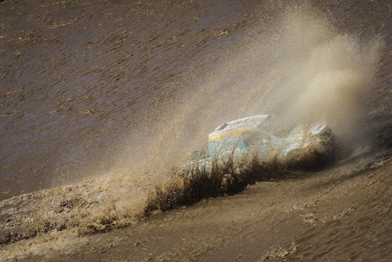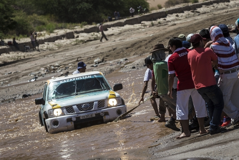 — В пяти километрах от старта был брод, река, которую нужно было пересечь, — делится впечатлениями пилот Д. Березовский. — Два дня назад у нас был неприятный опыт — залили двигатель, поэтому особо в русло «прыгать» не стали, решив пройти в этот раз препятствие на минимальном ускорении. Перед нами прошли грузовики, и мы решили взять чуть левее канала, где не сильно размыто, полагали, что там будет мельче. Однако, заехав туда, совершенно не ожидали, что воды окажется больше, чем мы думали — машину залило. И хотя ускорение было нормальным, выехать на другую сторону не смогли. Общими усилиями пришлось вытаскивать машину из воды руками. Хорошо, что все обошлось, и мы потеряли немного времени, в итоге сохранив результат.