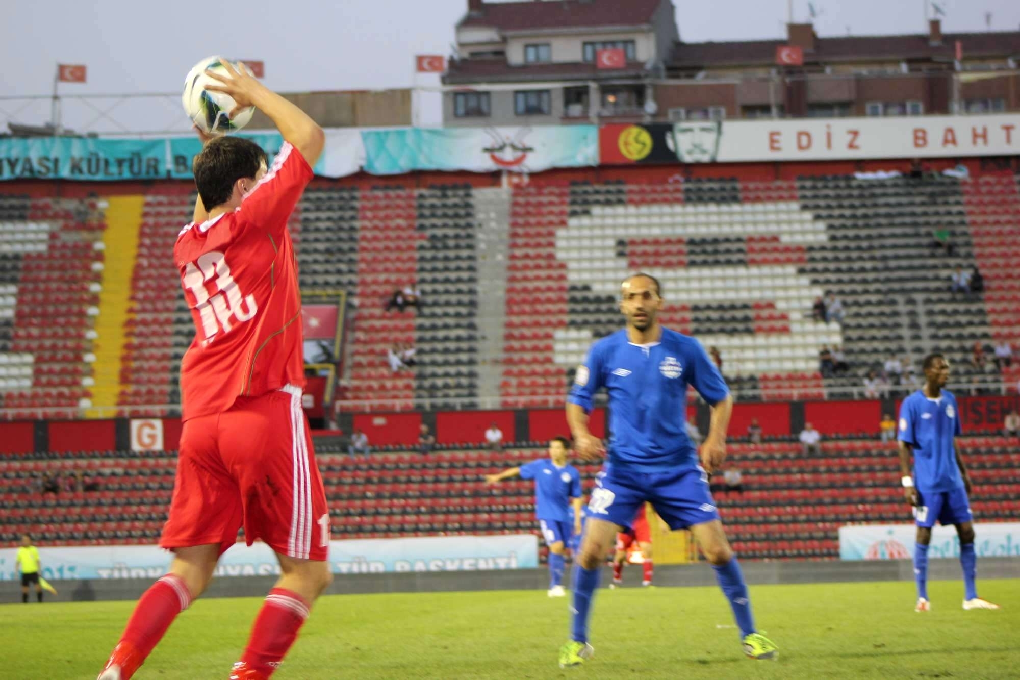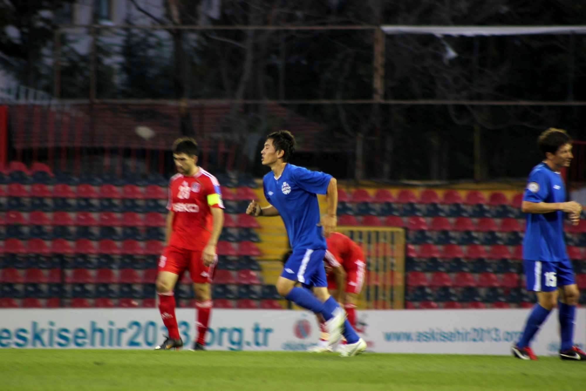 «Восток» прибыл на стадион в самом разгаре второго тайма. На игре присутствовало руководство города, и хозяева не подкачали, хотя киргизская дружина оказала отчаянное сопротивление. Удивительно, что стадион был наполовину пустым. С одной стороны понять болельщиков «Эскишехира» можно — как никак не финал, а лишь за третье место. А ведь в этой полуфинальной паре турки были явными фаворитами. Очень удивило несколько моментов. Во-первых, несколько фанатов находясь рядом с полицейскими спокойно «дымили» сигаретой. Фанаты «Эскишехира» громкими речевками приветствовали руководителей города, которые мирно пили кофе в вип-ложе. Кстати, порядок на стадионе поддерживает в основном специально нанятая охрана. Еще запомнилось, как три фаната выбежали на поле сразу же после финального свистка, чтобы поздравить с победой своих любимцев. Их спокойно вывели за пределы поля.