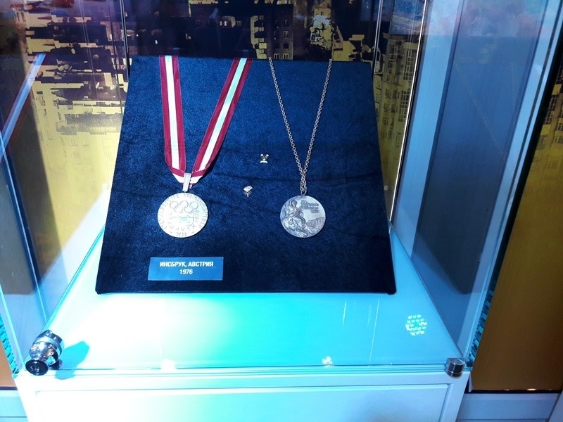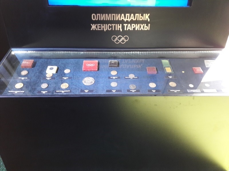 Среди экспонатов выставки можно увидеть: первый олимпийский факел, олимпийского Мишку Олимпиады-80, факелы нескольких Олимпиад, форму казахстанских олимпийцев, медали, завоеванные казахстанскими олимпийцами.