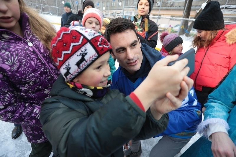 Он поговорил с ними о хоккее, ответил на их вопросы, раздал автографы и сфотографировался со всеми желающими.