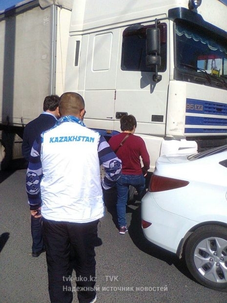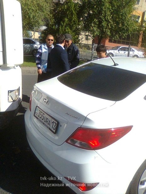 В автомобиль отца тяжелоатлетки «Hyundai Accent» сзади врезалась большегрузная фура. Ущерб автомашине нанесен небольшой, но видно, что ЧП с новеньким авто взволновало и расстроило всех.